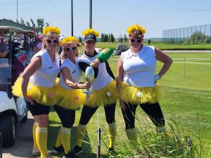 Upon our arrival at the Magrath Golf Club, we found everything prepared for us, and the conditions were excellent. There was a flurry of activity as we decorated our carts according to the theme: Wine & Roses. The decorations were impressive, and the club took photographs to commemorate their 100-year anniversary, having been in operation since 1925. The course was in great shape and it really is a hidden gem, with beautiful scenery, challenging play and good vibes. We finished our day with a very tasty roast beef dinner followed by prizes and fun. We enjoyed the day and I do believe the participants did as well.